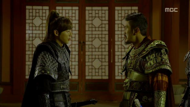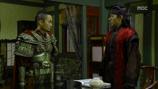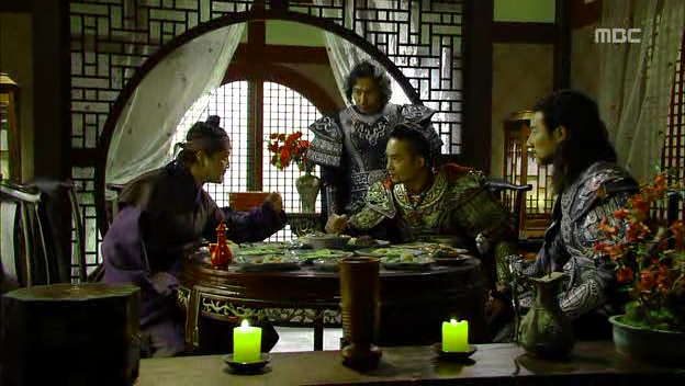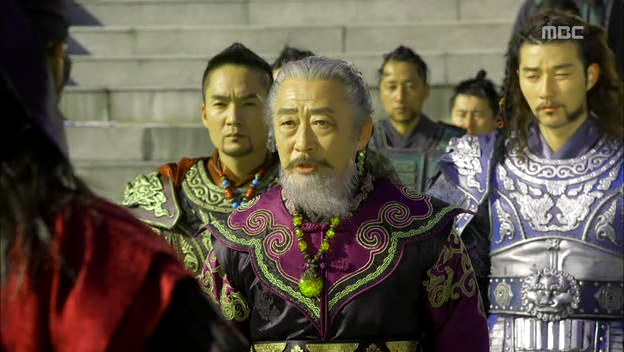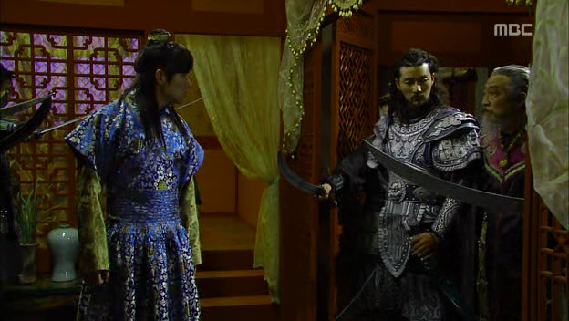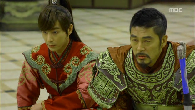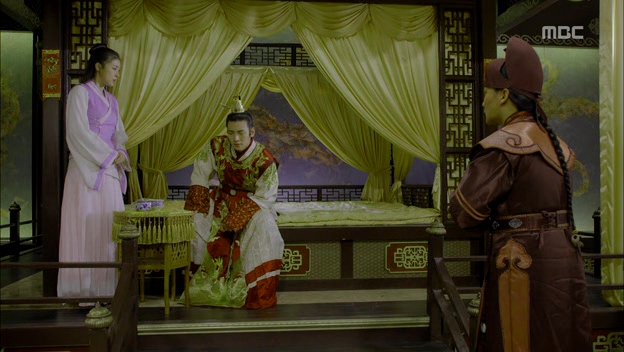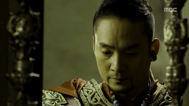 It’s an unlucky day for Ja-chom when he ran into Baek Ahn and Taltal as he’s trying to carry away the dead body of the eunuch earlier, whom they recognized as one of the Emperor’s eunuchs. Out of fear, he told them about Dangkise killing the man and Baek Ahn barged into Ta-hwan’s quarters to inform him about it. Golta tried to block them but to no avail and they realized that the sleeping man was not Ta-hwan, but his bodyguard Namoo. Golta explained that the Emperor wasn’t there and Taltal told him that one of his eunuchs had been killed by Dangkise. Golta was shocked to hear about it. Baek Ahn wondered what Dangkise what planning behind them.