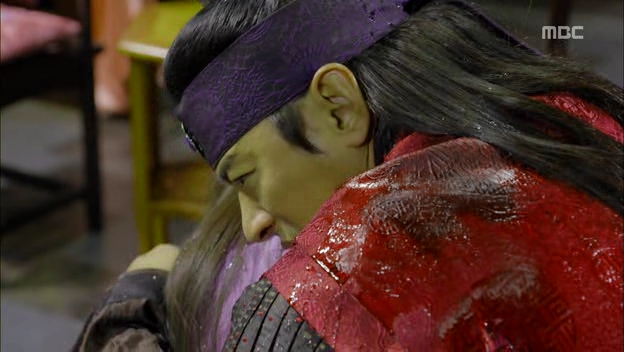 Ta-hwan was worried about Seung-nyang and as soon as he got to know her location, he went to the prison where she’s locked in. She was actually being tortured and passed out. Dangkise touched her face, saying that she won’t be able to escape  from him and leaving him would mean death for her (creepy). Yoo arrived there with his sword, threatening to slice Dangkise’s neck and told him that Yeon-chul had agreed to release her. He gave Dangkise another ‘present’ that was a punch in his face, causig him to fall down unconscious.