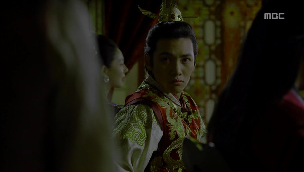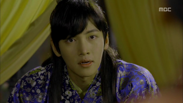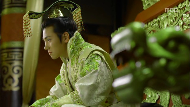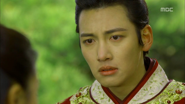 And…Ta-hwan was venting his anger over his jealousy. Awwww, Baby Emperor was upset that Seung-nyang didn’t even bat an eye when he was injured during the football match but she’s worried to death for Yoo! But then, he told himself that an emperor shouldn’t get angry easily over petty things like that. So adorable! Suddenly, he realized that Seung-nyang wasn’t there and knowing that she would go straight to Yoo’s quarters even without his permission, he told Golta to go and fetch her.