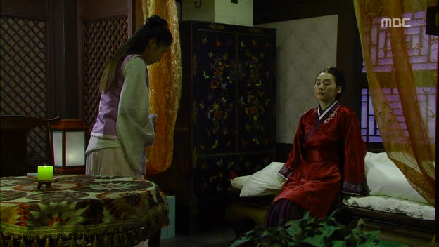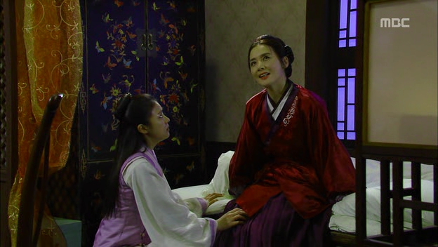 Seung-nyang entered her room to find Court Lady No looking at her mirror but the lady quickly hid the mirror upon realizing that she was there. The lady was in her right mind and she got angry when Seung-nyang displayed lack of respect towards her as the superior one. She told Seung-nyang to massage her leg and asked whether Seung-nyang was from Goryeo. She spit out some displeasing remarks about Goryeo people before admitting that she’s also a Goryeo person. From the way she looked at Seung-nyang, Court Lady No seemed to be fond of her.