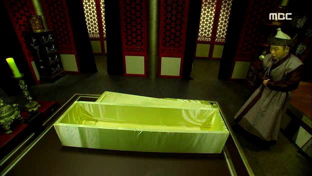 Yeon-chul, despite his sickly state of coughing blood, chose to hold the sword to protect himself since all the soldiers had to leave for the battle. Byung-soo arrived to report that they won the battle and Dangkise would soon arrive at the palace. Yeon-chul decided to go to the throne hall. At the same time, Ta-hwan had gathered the (all-black ninja) trained eunuchs with the aim to kill Yeon-chul since the old man had no soldiers beside him. The old man entered the hall but he could hear the eunuchs approaching them and soon, both him and Byung-soo were outnumbered by those men.