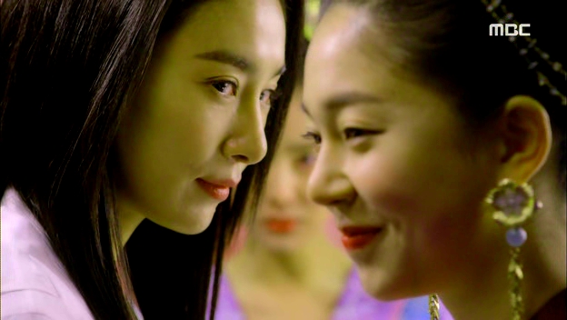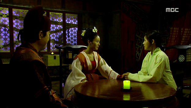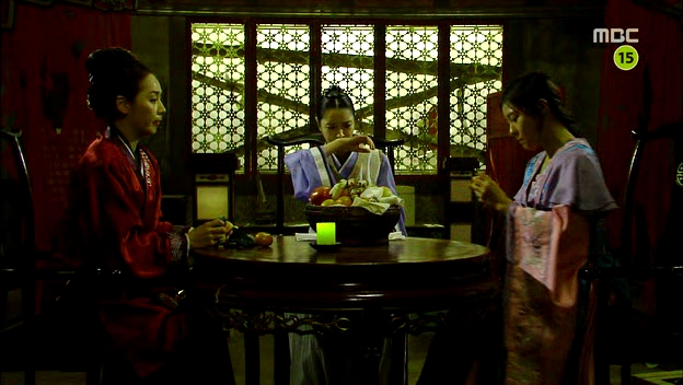 Hong-dan brought a basket full of food for Seung-nyang and Court Lady No. She took a bite of the tangerine but found it too sour; however, Seung-nyang found it delicious. Uh-oh. Even the court lady sensed that something was off with Seung-nyang! Ta-hwan could only ask  Golta for any news regarding her and he didn’t want to meet her, afraid that his greed would lead her towards danger. Golta suggested that he went to the harem with the excuse to visit Lady Park and meet Seung-nyang, and off he went there later in the night. Unfortunately, he ran into Tanashiri, who wasn’t too happy to see him paying more attention towards Lady Park when she herself was pregnant with his child too. He had no other choice but to leave and Tanashiri was angry that Lady Park would have a son, so she summoned a physician to find out about her child’s gender. Well…isn’t it too soon for it, dear?