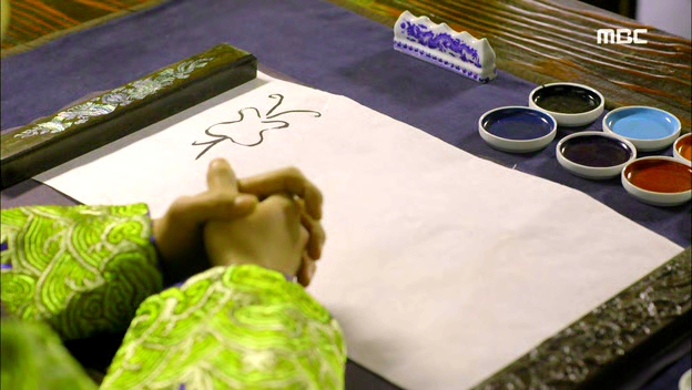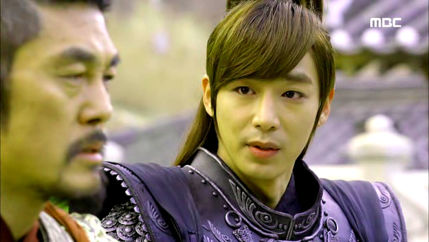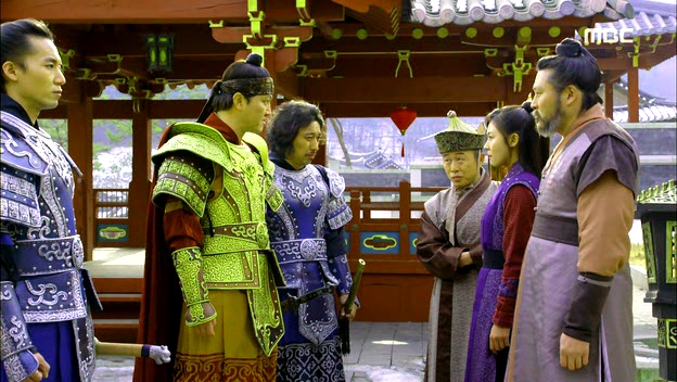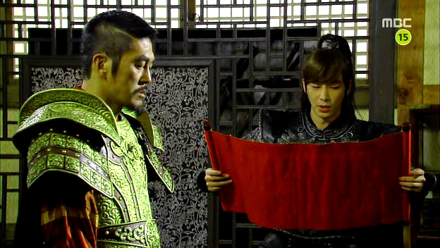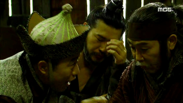 Ta-hwan was alone in his quarters (what’s up with the headband?! Glorious forehead, I want to see you~!), looking at a drawing of a butterfly he made. Yeon-chul came to ask about the eunuchs who tried to assassinate him and decided to have Ta-hwan being followed around all the time to prevent the Emperor from meeting wrong people. Urgh. The old man left and Ta-hwan had a hard time to breath, asking for Seung-nyang to be summoned for him. Golta broke the news about Yoo and Co. leaving for Goryeo, and Ta-hwan was mad that Yoo never said his goodbye (I found this line funny but he just wanted to see Seung-nyang). It was all due to Yeon-chul’s planning, who refused to let Yoo meet Ta-hwan, and Ta-hwan felt really lonely with everyone leaving him behind…Seung-nyang, Empress Dowager, and Baek Ahn. Awwww…even Golta looked so sad! He’s always there for you, Ta-hwan!