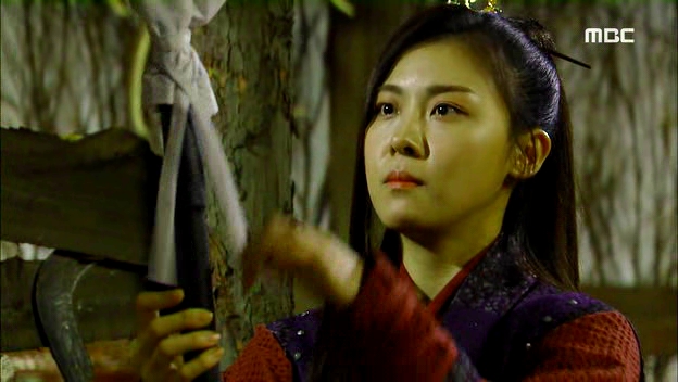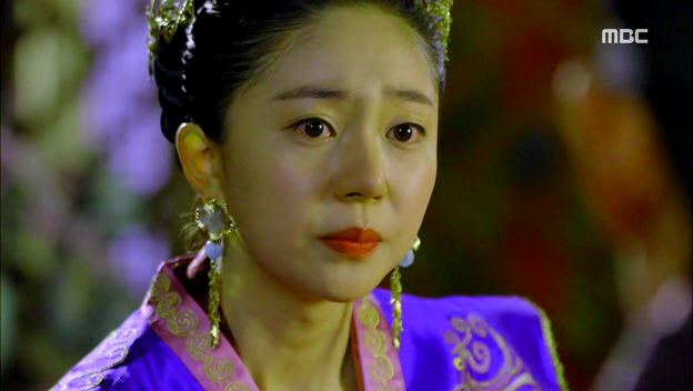 Somehow I miss seeing Empress Dowager in her imperial robe. If only she was inside the palace when Tanashiri announced her pregnancy, I bet the Dowager would try her best to prove that Tanashiri was faking it. Although the Dowager could be a threat for Seung-nyang later, she’s undeniably a great figure. I truly respect her with her bravery to sacrifice herself for the sake of protecting the throne and she was a true hero! Tanashiri, on the other hand, was originally a pitiful character but she dealt with her problems using a simple method: kill whoever she didn’t find to her liking. So..I can sympathize with her inability to produce the heir and get Ta-hwan’s affection, but at the same time, her sadness doesn’t mean that she can do anything according to her feelings. Ahhh…what do I do, dear Empress?