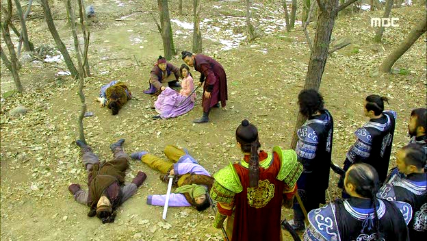 Tanashiri was visited by Dangkise and she pleaded for her brother to get rid of Lady Park since she couldn’t stand the sight of the lowly woman having Ta-hwan’s child before herself. Dangkise was reluctant at first but chose to do so, but with the condition that it was kept a secret for their father. He hired a group of thieves for the job. Uhhhh….