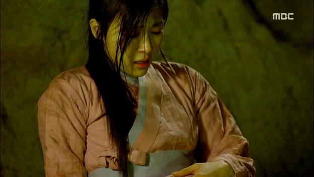 Seung-nyang tumbled down a hill and hit her stomach against the ground. Eunuch Bang had to distract the soldiers away and she was left alone, only to realize that there were blood stains on her skirt. Ta-hwan only got to know about Seung-nyang’s escape later. She took shelter inside a cave while apologizing to her child for her inability to protect him. Suddenly, she felt the sharp pain in her stomach and she started screaming alone inside the dark cave….