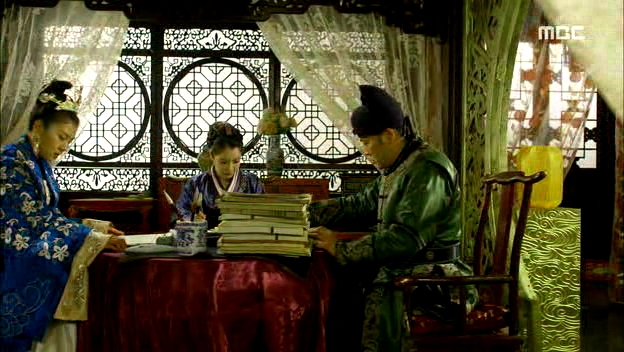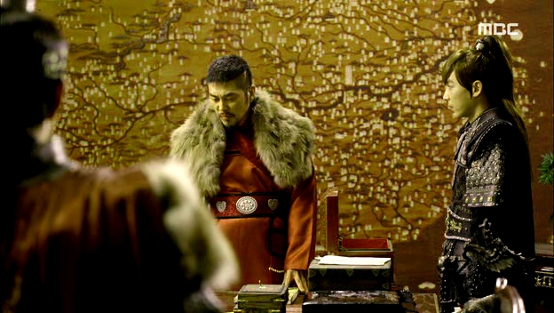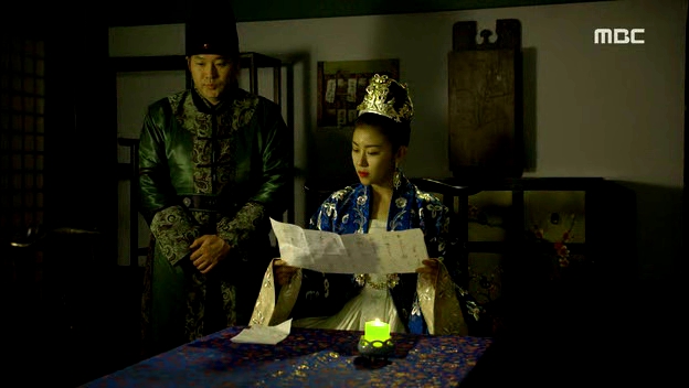 Ta-hwan assured Seung-nyang that he would put her on the Empress’ seat at any cost. Baek Ahn and Taltal went to meet them and Ta-hwan thought that Baek Ahn would have to persuade the Dowager into changing her heart. Taltal showed him a list of people who opposed Lady Ki’s appointment and the first name on the list was Baek Ahn the Chancellor. It came out as a surprise to Ta-hwan and Seung-nyang (but not to us) and he thought that Baek Ahn would support him since Lady Ki was his adopted daughter. His excuse? The Empresses before this mostly came from the Onggirat clan and he couldn’t simply change the tradition because of his personal feelings.