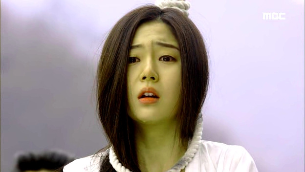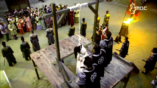 Tanashiri had the noose put around her neck and she started to think about her family, feeling afraid and powerless to face her death alone. Seung-nyang took a look at the trembling Tanashiri as her mind wandered off, thinking about Lady Park.