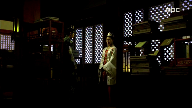 “That was close! She managed to walk out of the secret room at the same time Ta-hwan arrived there. He demanded to know why she didn’t come when she was summoned, but Seung-nyang made an excuse that she heard about him wishing to be alone.”