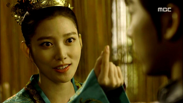 Ta-hwan wasn’t interested at all but he didn’t ignore the girl completely; she bowed to him and introduced herself as Bayan (Im Joo-eun!!). Seung-nyang witnessed their first meeting from afar. The girl was just like the rumour said: beautiful and kind. She was glad to be able to meet the Emperor, but Ta-hwan informed her beforehand that he won’t pick any new Empress soon, so it’s better if she took her leave right now. However, Bayan was bold and brave enough to assure him that he would pick her as the Empress after he heard her thoughts. The new Empress is smart! After all, she came from the same family as Taltal, so she ought to inherit those genius genes in her, right?