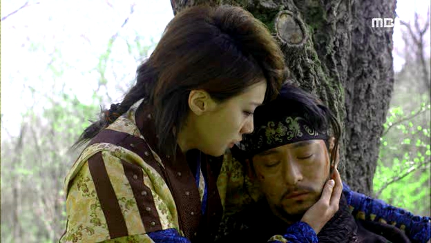 i wish nyang would let go of her feelings for wang yu. only because they make her act foolish and put herself in bad positions. i think its because they never got closure on their relationship. they were forced apart, but she cant live in the past. i think she has feelings for ta hwan, wang yu is taking up space in her heart. ta hwan is wrong for raping her, but hes crazy now so i cant really say much about him. he relies way too much on sungnyang. without her he falls apart, probably because she keeps saving his life and acting like his mother. shes stern with him and tells him how to do things, comforts him, she even taught him to read. shes literally everything to him. he really needs to stop drinking though. and i feel so bad for maha. his life really sucks. no mom. dad hates him. family gone. grandma using him.