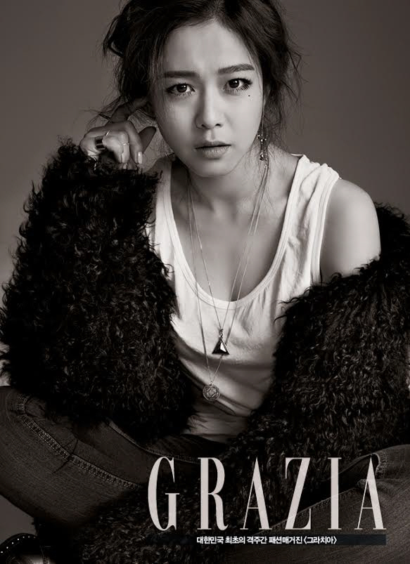 These shots of Kyung Soo-jin (Plus Nine Boys) for Grazia highlight her charming yet edgy look, but the black and white photos remind me of her ‘black bride’ pictorial for Arena Homme+ back in September. Well, if I have to choose, my money is on the black bride look, although she is stunning in white dress too~
