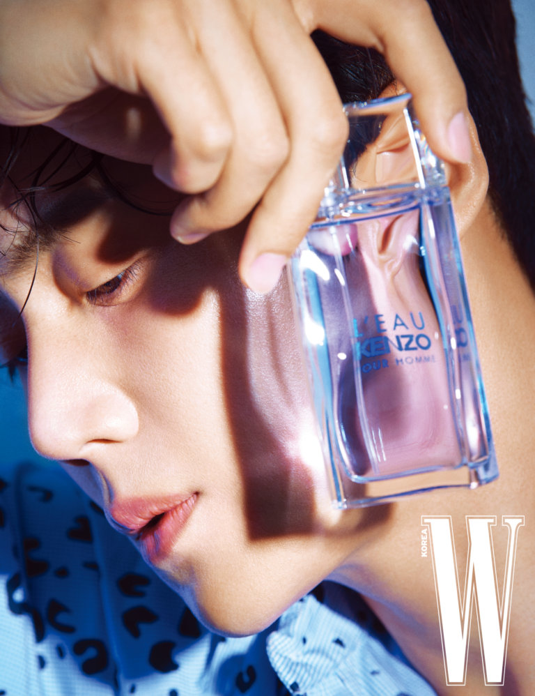 Kim Seon-ho himself had a memory about scents. “It was probably during high school when I got a girlfriend. We held hands and I could smell the perfume she was using. I would be nervous all of a sudden when I recognized the scent.” During his days in theater, he once received a perfume gift from someone and that was a Kenzo perfume. “Men’s perfume tends to give off the heavy and matured scent but I don’t like that. Kenzo’s perfume is light and has that fresh feel to it. After I used up the perfume I got as a gift, I bought another of the same brand and continued using it. After watching Kim Seon-ho filming the concept video featuring the two types of Kenzo perfume and a date with a girlfriend, we just had to ask him about the most memorable line about scent after Patrick Suskind’s Perfume. Successful actors tend to gain a famous line from their works (like Kim Hye-soo’s “I went to Ewha” from the movie Tazza). If Kim Seon-ho happens to be a ‘master of romantic comedy’, his lines from his past works like the drama special we chanced upon would be recalled like memes. Actually, that line was almost discarded during the filming if not for the director’s decision, since it became such a cheesy dialogue once it was said out loud. “I asked to deliver the line lightly once and it would be alright if they decided to edit it out later if it was deemed to be weird. The camera director also helped me to bring the line to life. The director was such a cool person. After watching my acting, he said, “It turned out okay!”