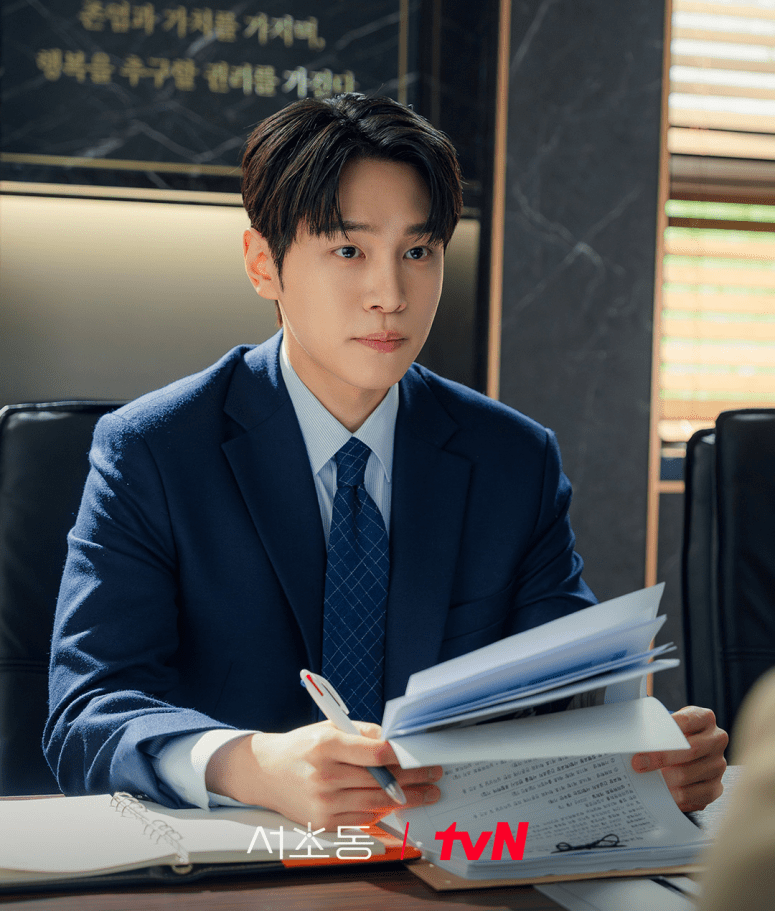 Now it’s time to spotlight our five main characters as individual persons before I move on to the group, followed by some supporting characters and arcs. First up would be our leading man Lee Jong-suk, starring as senior associate Ahn Ju-hyeong in Kyungmin Law Firm. This is the actor’s long-awaited drama comeback after 3 years – his last project on the small screen was 2022’s Big Mouth. His co-star Ryu Hye-young, who played lawyer Bae Mun-jeong teased during an interview with Viki that one charm of the drama is that you could meet actor Lee Jong-suk, and that viewers could only meet him in kdramas, LOL 😆 I wouldn’t say that I am his biggest fan but I’m pretty sure it is a pleasure for many to see him on screen.