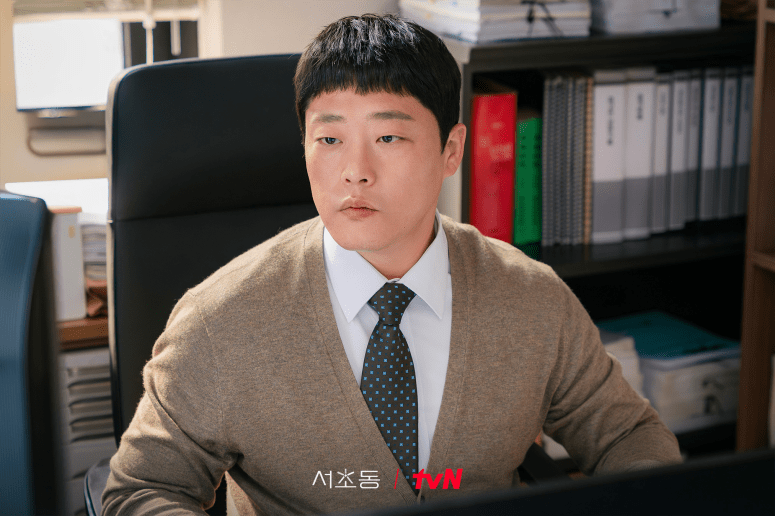 Next up we have Im Sung-jae, who plays lawyer Ha Sang-gi and works at the sixth floor office of the building. I would say that Sang-gi is the most introverted out of the five friends, personality wise. That was partly why Sang-gi was silent the whole time when the article about a certain lawyer with the same surname being the eldest son of conglomerate Hanguk Group working at a Seocho-dong law firm blew up. Everyone thought the person the news referred to was him, but Sang-gi chose not to say anything. When his boss CEO Kim and ex-boss asked, he also didn’t bother to elaborate further. Not even to his four friends – to me it wouldn’t matter as much if you are being judged by strangers or people who don’t really care about you but it would be extra hurtful if these individuals are ones you care deeply about. I think that was very telling of Sang-gi’s maturity and sensibility when it came to handling this issue. Not everyone would think like him, and ultimately his response was also considerate and respectful towards the attorney Ha in question. I do think that the trigger point to publish the post on his blog “Lawyer’s Table” (which he had only used to post about food and fun things) was when Sang-gi saw his friends in particular Chang-won (Kang You-seok) and Mun-jeong getting implicated, after reporters camped at his workplace to harass him in wanting to get an exclusive news scoop. Sang-gi is such a good-hearted man, I felt for him when he was misunderstood. 😢