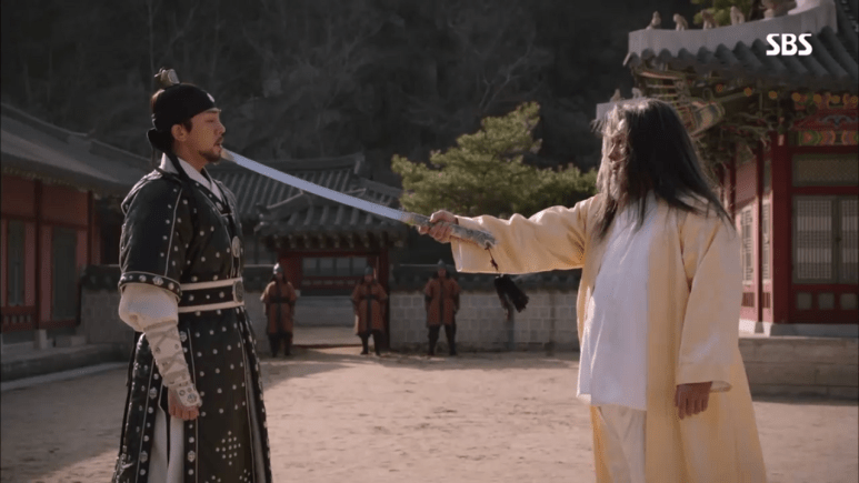 As predicted, Taejo’s anger flared upon seeing Taejong and he used his bow and arrows, which were always in his possession. Taejong took cover behind the shield as the arrows shot by Taejo hit the shield. Ha Ryun’s prediction turned out to be true. Taejo eventually released all the anger burning inside him and accepted it as God’s will.